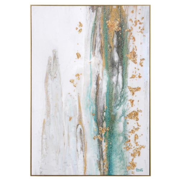 - Soft strokes of emerald green are highlighted by bold gold and the signature broken glass of glass artist Mary Hong in this piece.