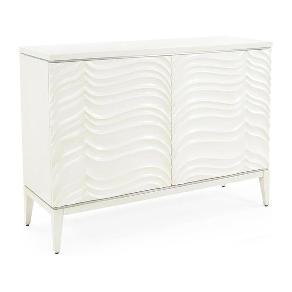 - Symmetrical flourishes stretch across the face of the elegant Regalia Chest, mimicking bundled layers of delicate fabric
