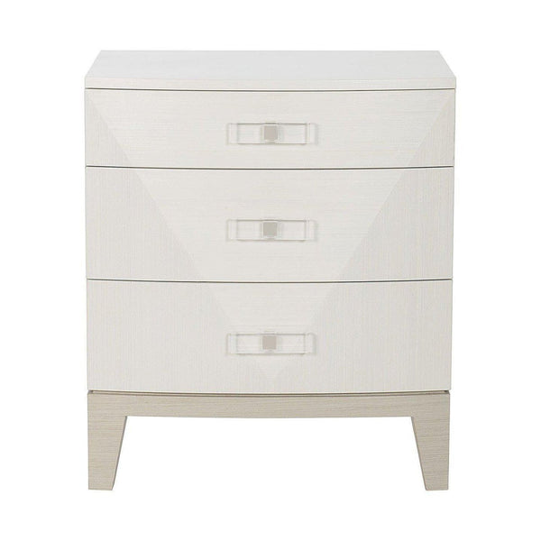 - With clean lines and a sleek form, this three-drawer nightstand remains a warm and inviting staple for the bedroom.