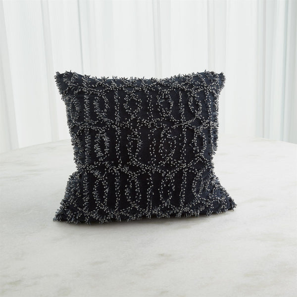 - The Circles Beaded Pillow is crafted of indigo cotton velvet with hand-beaded embellishments on both sides and includes a down fill insert.