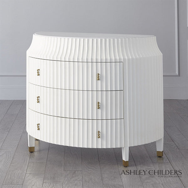 - Gracious proportions, gorgeous fluting in a soft ivory finish, honed marble tops and hand cast brass pulls make this collection one of Ashley's favorites.