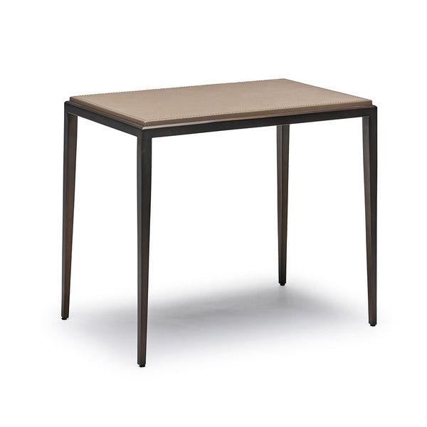 - With a beach / caramel stone leather top and classic bronze cast iron legs, the Auburn Side Table is an au courant take on a midcentury silhouette.