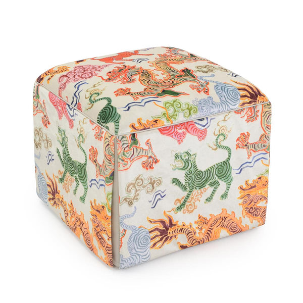 - This Chelsea Ottoman is shown in fabric Tibetan Tiger 2227 and accented with welt and underskirt in fabric Gimlet String 1120.