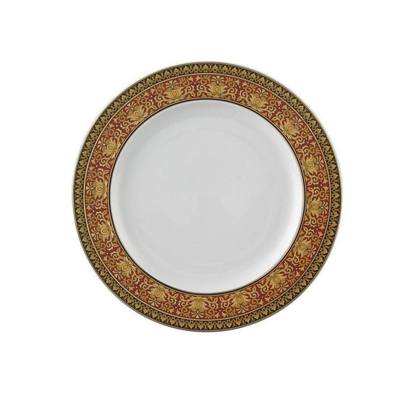 One of the first sets of the collection "Rosenthal meets Versace”, the décor "Medusa” by Gianni Versace on the form of the "Ikarus” mirrors the matchless rich, color intensive world of Versace. Central eye-catcher of this collection is a glorious gold colored head of Medusa, an unmistakably Versace emblem, framed by expressive baroque ornaments. The centrally placed head of Medusa decorates all cups, pots, service and breakfast plates of the collection "Medusa”. Varacious aristrocratic colors, bright red, precious gold and black with lavish delicate designs and ornaments give the head of Medusa a colorful elegant framework.