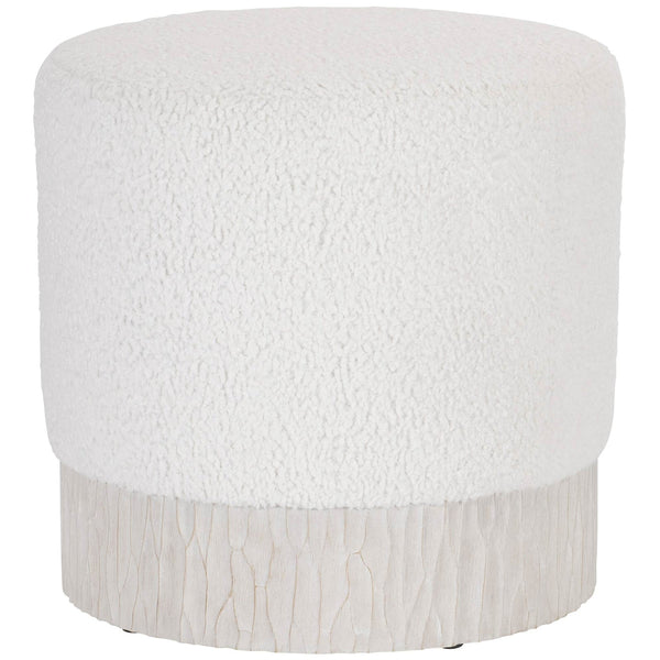- The rounded ottoman offers extra seating or a footrest in a soft and subtle style.