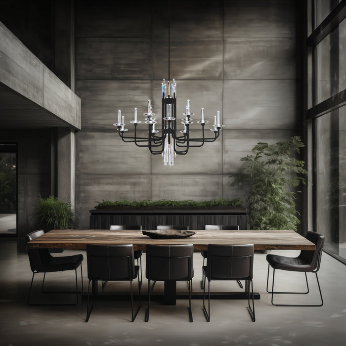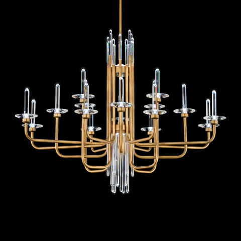 Transform any setting into an enchanting realm with the Calliope. Candlesticks crafted from faceted Optic Crystal columns are brought to life by the tender glow of concealed LEDs, casting a romantic aura that dances both above and below. Exquisitely wrought metallic arms gracefully unfurl in a sinuous, artful embrace, culminating in a majestic central column accented with spears of Optic Crystal whose sparkling facets catch and reflect the light.