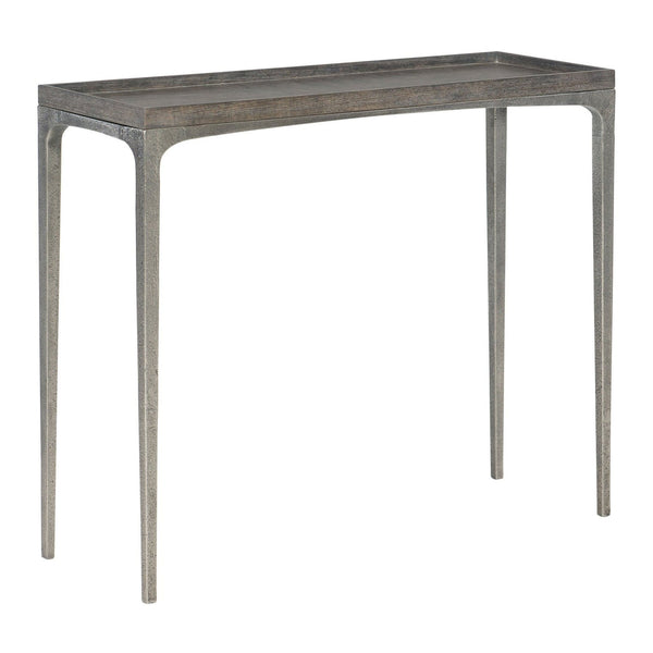 - The rustic look partners elegantly with a sleek and slender base crafted from heavily textured metal.
