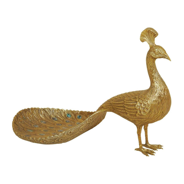 - Soft Finished Cast Brass Peacock Dish with Paua Shell Inlaid Accents