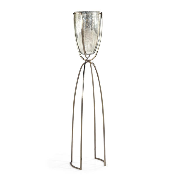 - A reflective glass bowl sits at the top of the piece, beautifully complementing the cool silver hues to complete the look.