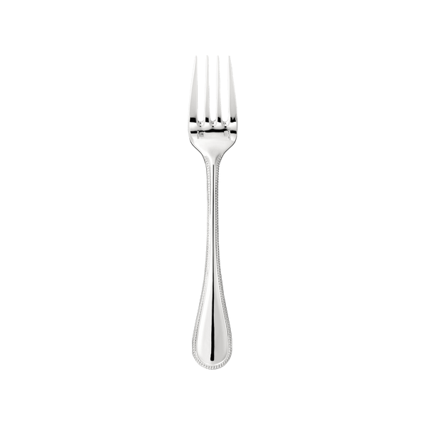 - The silver plated salad fork in the Perles pattern is wider than a dinner fork to facilitate cutting through lettuce with ease