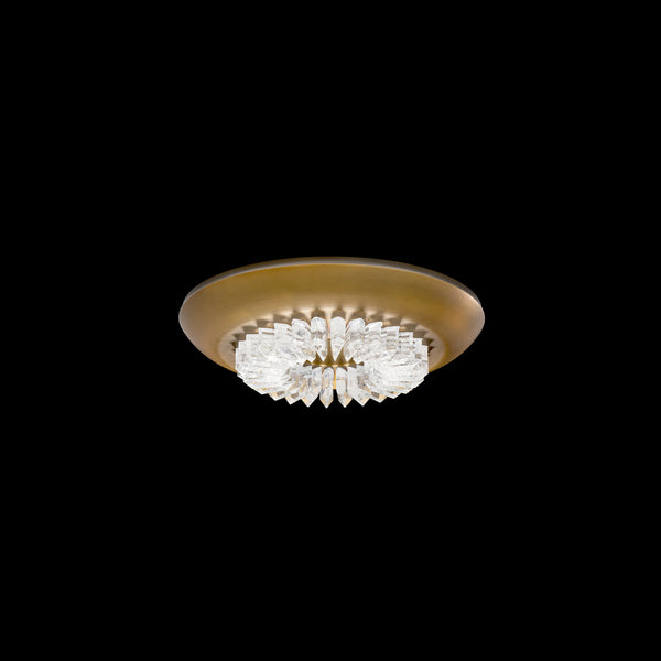 With chic allure, Bellaire is a ceiling luminaire both modern and timeless. A lustrous aged brass dish hiding LED light sources captures a circlet of flat, faceted Optic Crystal and diffuser of Radiance™ Crystal Dust, brought to sparkling life by the artistry of our master craftspeople. Playing with contrasts, this radiant light is truly entrenched in both the romance of a bygone era and today’s contemporary elegance.