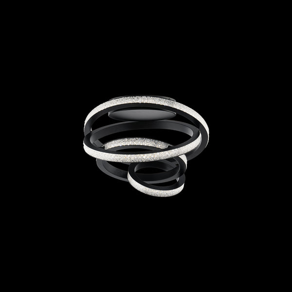 Twisted. A curvy black metallic frame embraces a sparkling Radiance™ Crystal Dust diffuser, capturing and casting a glowing vortex of light.