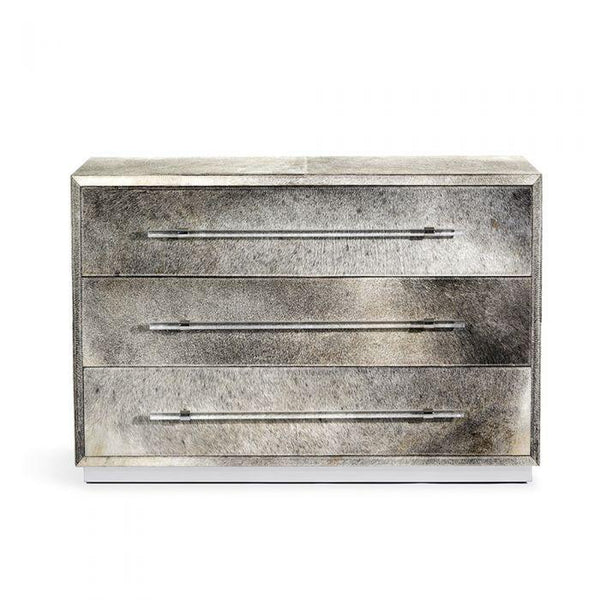 - Boasting black hide with clear acrylic pulls and shiny brass accents, the Cassian Chest brings an unexpected, fabulous twist to a storage staple.