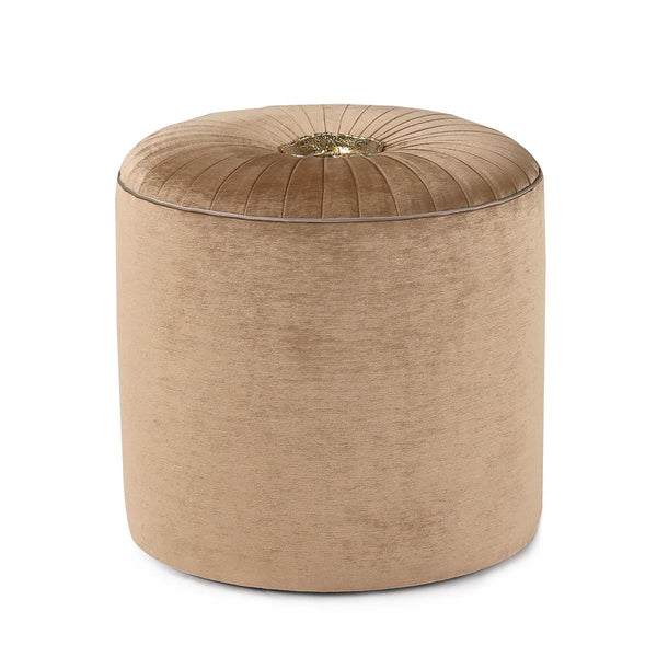 - This ottoman exhibits a rich, textural look through its pleated top and an aluminum accent adorned in a Nickel finish.