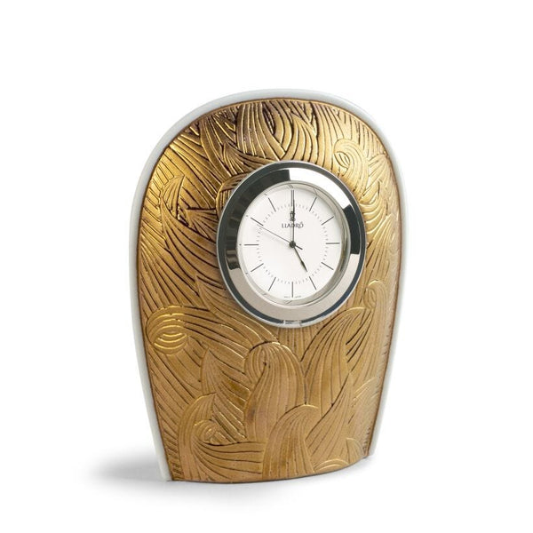 - Mantle clock from the Mirage collection, ornamented with a decorative etching.