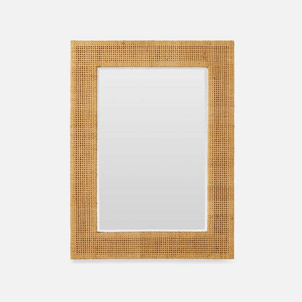- Clean lines and a beveled edge elevate this classic rattan-framed mirror.