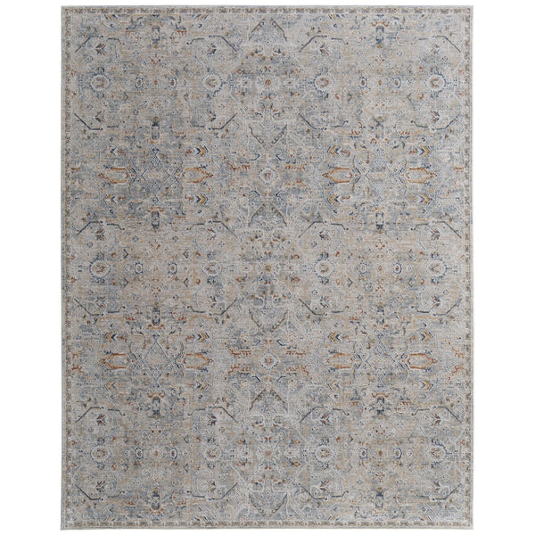 - The bordered area rug design exudes sophistication, while the medallion-inspired pattern in shades of grey and blue adds a touch of charm and intrigue to your space.