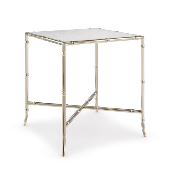 This simple yet elegant accent table beautifully blends modern materials with traditional Asian design influences. A luxe landing for a beverage or book, it features a white Rhino marble top, elevated on a faux bamboo metal frame and stretcher finished in a Whisper of Gold. Style on its own, or pair with our Ceylon Tall nesting table to add an easily accessible extra table when guests arrive.