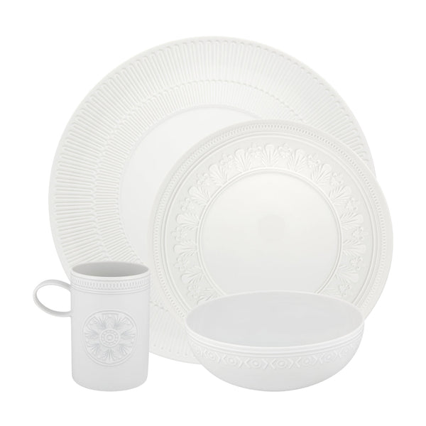 - Set includes 1 Dinner plate, 1 Dessert plate, 1 mug and 1 cereal bowl