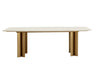 The luxuriant materials of the Astara Dining Table bring a mesmerizing feel that will transform any dining space. A beautiful cream marble table top paired with brushed antique gold stainless steel legs lend an appreciation for sophisticated modern style.