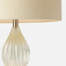 - Handblown with opaque resin, our Moira table lamp features an elegant hourglass shape, topped with a linen shade.