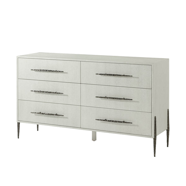 - The Essence Dresser gracefully contrasts hand textured metal pulls with an exquisite white oak frame.