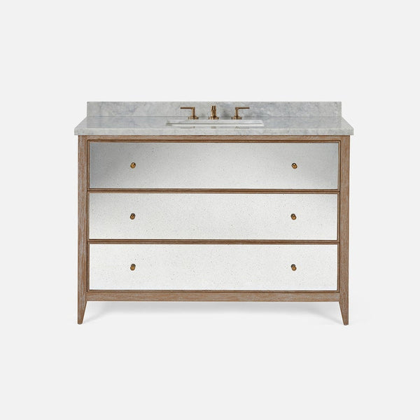 - Antiqued mirror panels bordered by hand-finished stained oak evoke a romantic ambience inspired by traditional European design.