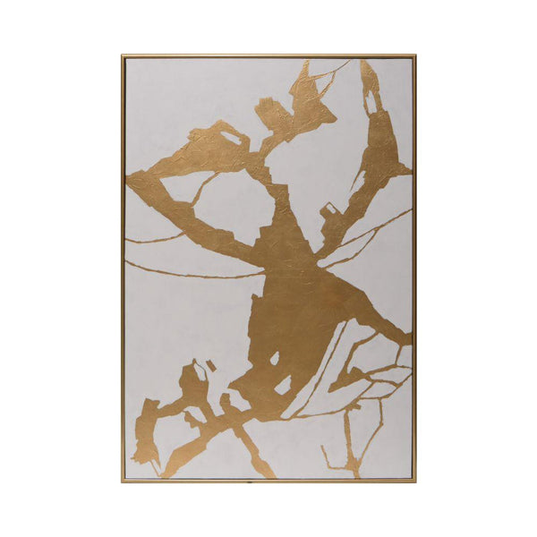 - This dramatic painting featuring bold, texturized strokes of gold paint creates stunning visual movement.