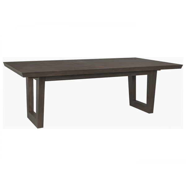 - The 88-inch rectangular table extends to 124 inches with the two 18-inch leaves, comfortably seating twelve, supported by open rectangular block legs.