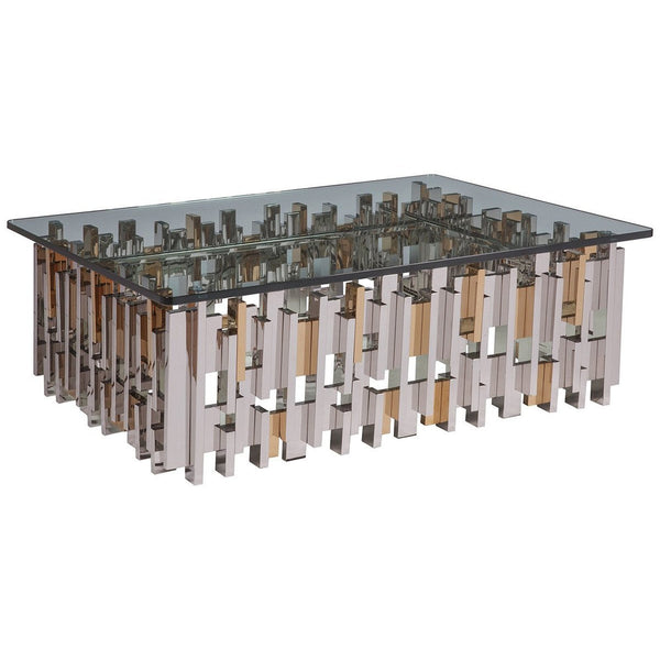 - Contemporary asymmetrical designs crafted from stainless steel and brass in a rectangular shape.
