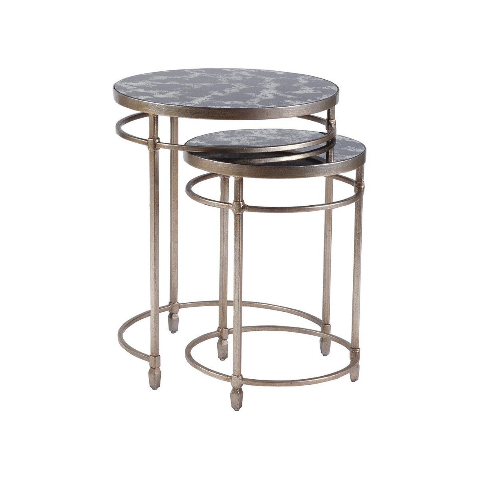 - Our Colette Round Nesting Tables feature delicate forged iron in champagne foil finish leafed by hand, and completed with distressed antique mirror tops.