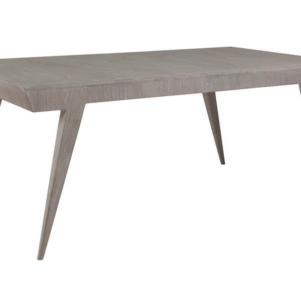 - Straight grain pattern on the top with saber legs. Mahogany solids and veneers with hand wire brush graining in the Grigio finish, a warm gray tone.