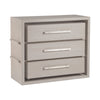 - The interecting parting rails suspend the three drawer box, with the added feature of soft-close drawer guides and elongated drawer pulls in a nickel finish.