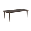 - Brushed nickel accents and ferrules, tapered legs. Bottom of apron to floor 28. Table extends to 106-124 with (2) 18-inch leaves.