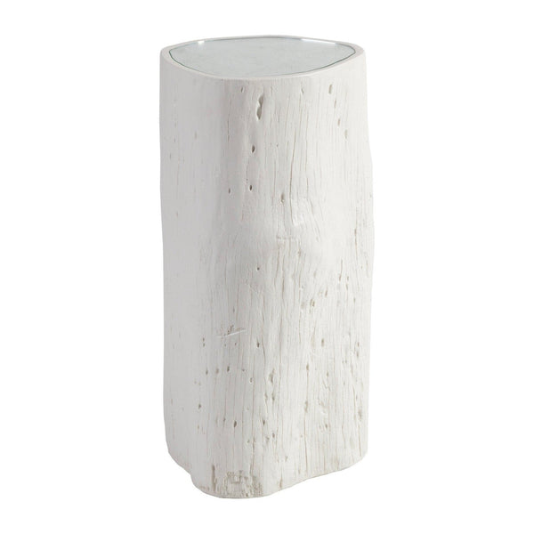 - Organic table, nature form casted from true trunk segments and finished in a dry gesso white with inset antique silver leaf backed glass top.
