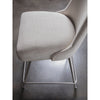 - Mid-century modern design as an upholstered swivel seat sitting on tapered brushed stainless steel legs.