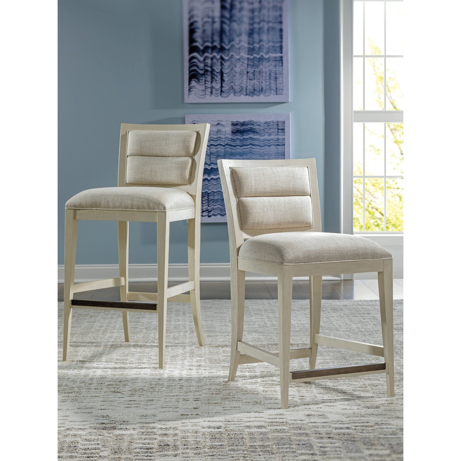 - Late Mid-Century design crafted from select hardwoods in our Cerused White Gray finish with channel upholstered inside back.