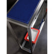 - Blue jade inset glass top, brushed stainless steel base and one glass shelf.
