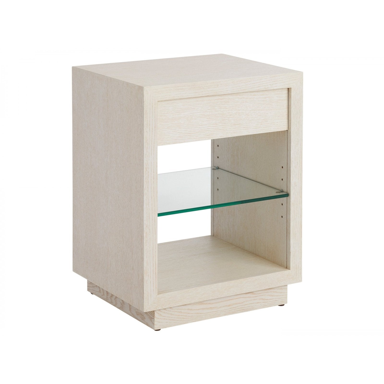 - It has a storage drawer at the top, an adjustable glass shelf in the middle and a recessed plinth base at the bottom.