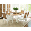 - The 58-inch round Capistrano dining table extends to an 80-inch oval with a 22-inch leaf.