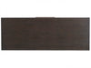 - Both the long bar pull hardware and base of the side panels are decorative metal in a burnished bronze finish.