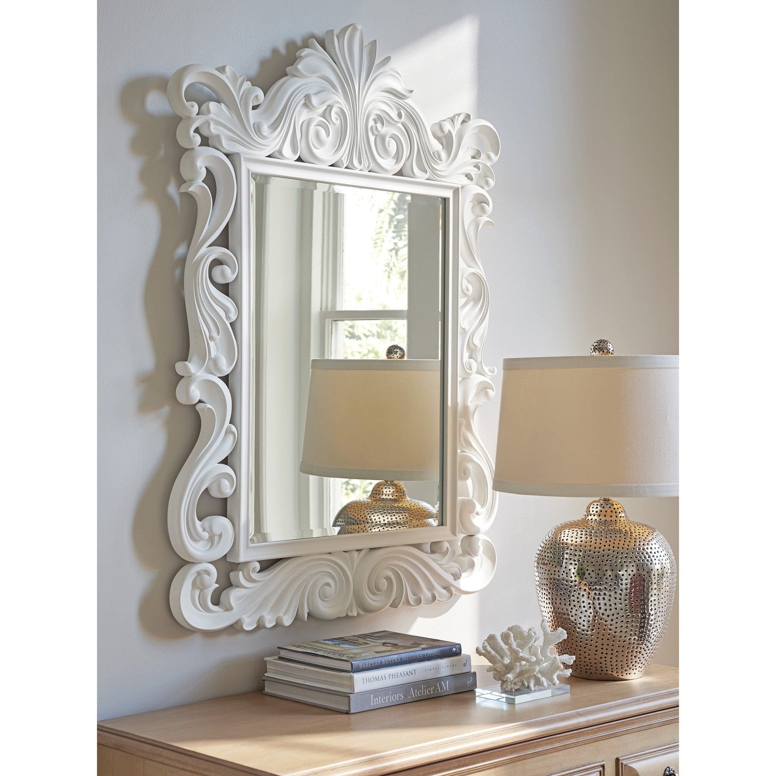 - The Aries mirror features a decorative frame with pierced carving, and a mirror plate with a 1-inch bevel.