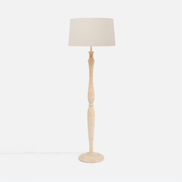 - Two sizes of hand strung coco beads are wrapped in tight circles around the Barlow, adding a textural feel to this graceful floor lamp.