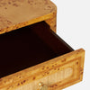 - At the center, an opening provides additional storage and draws attention to the burl's swirling beauty.