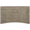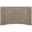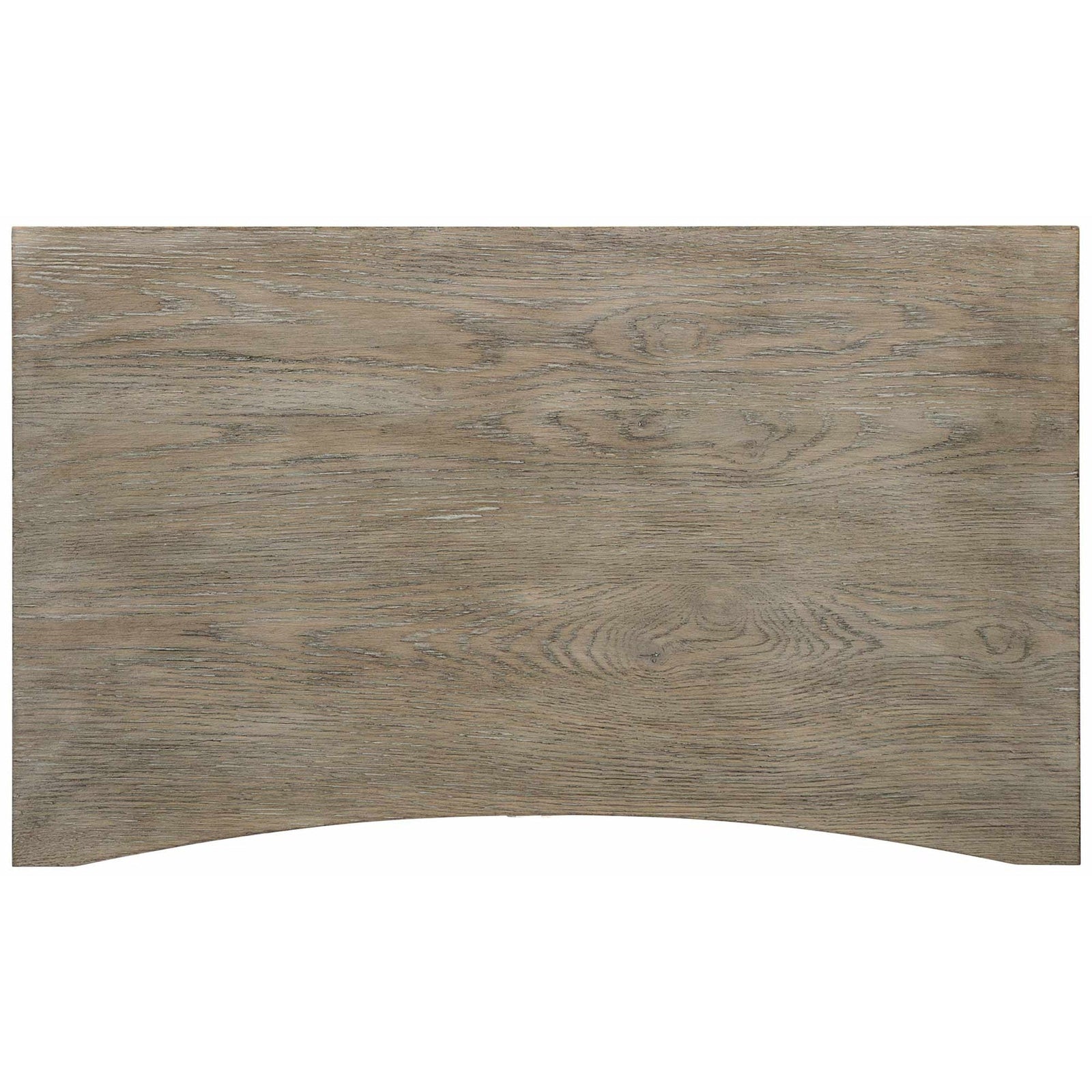 - Straight lines give way to a concave curve along the front, where two drawers offer sleek storage.