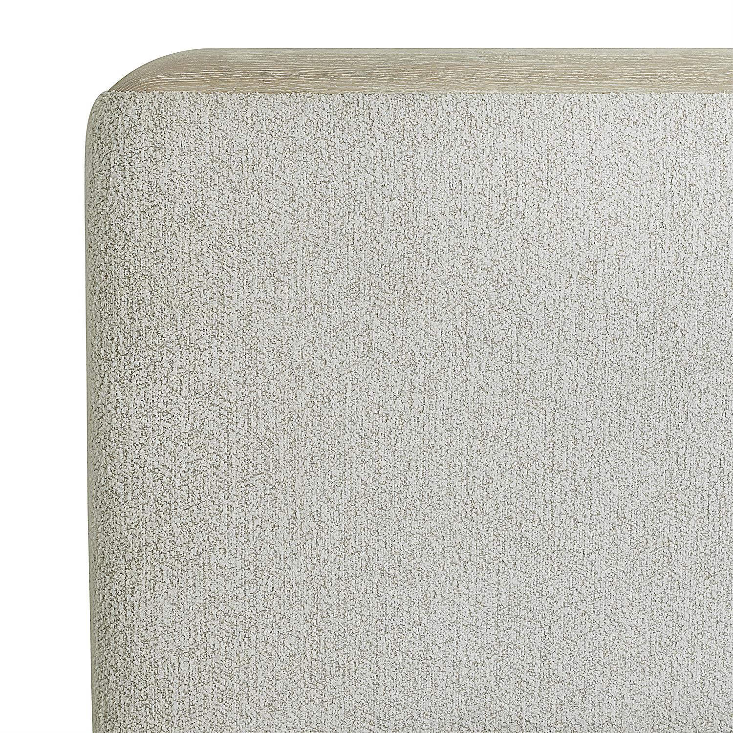 Beautifully rounded and upholstered panels form the headboard and footboard for the Arcadia panel bed. The shapes are highlighted by cast resin cap rails with a woodgrain pattern in Clay finish. Upholstered side panels continue the textural design, giving this bed a serene style.