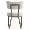 - The exposed wood frame on the Casa Paros side chair bends and turns to form a unique shape.