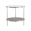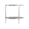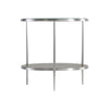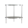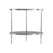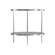- Metal frame in Brushed Stainless Steel finish with tempered, polished-edge glass top and one wood shelf in Nebbia finish