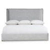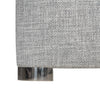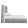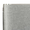 A polished stainless steel frame wraps around the shelter-style headboard of the Croix panel bed for an incredibly chic design. The metal shell is balanced by a soft and comfortable upholstered interior panel. Low side rails and a footboard are also upholstered and supported by curved stainless steel feet.
