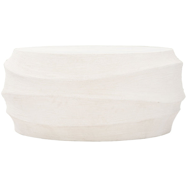 - Crafted from natural stonecast in a white finish, the Kai cocktail table offers shape and movement with a coastal vibe.